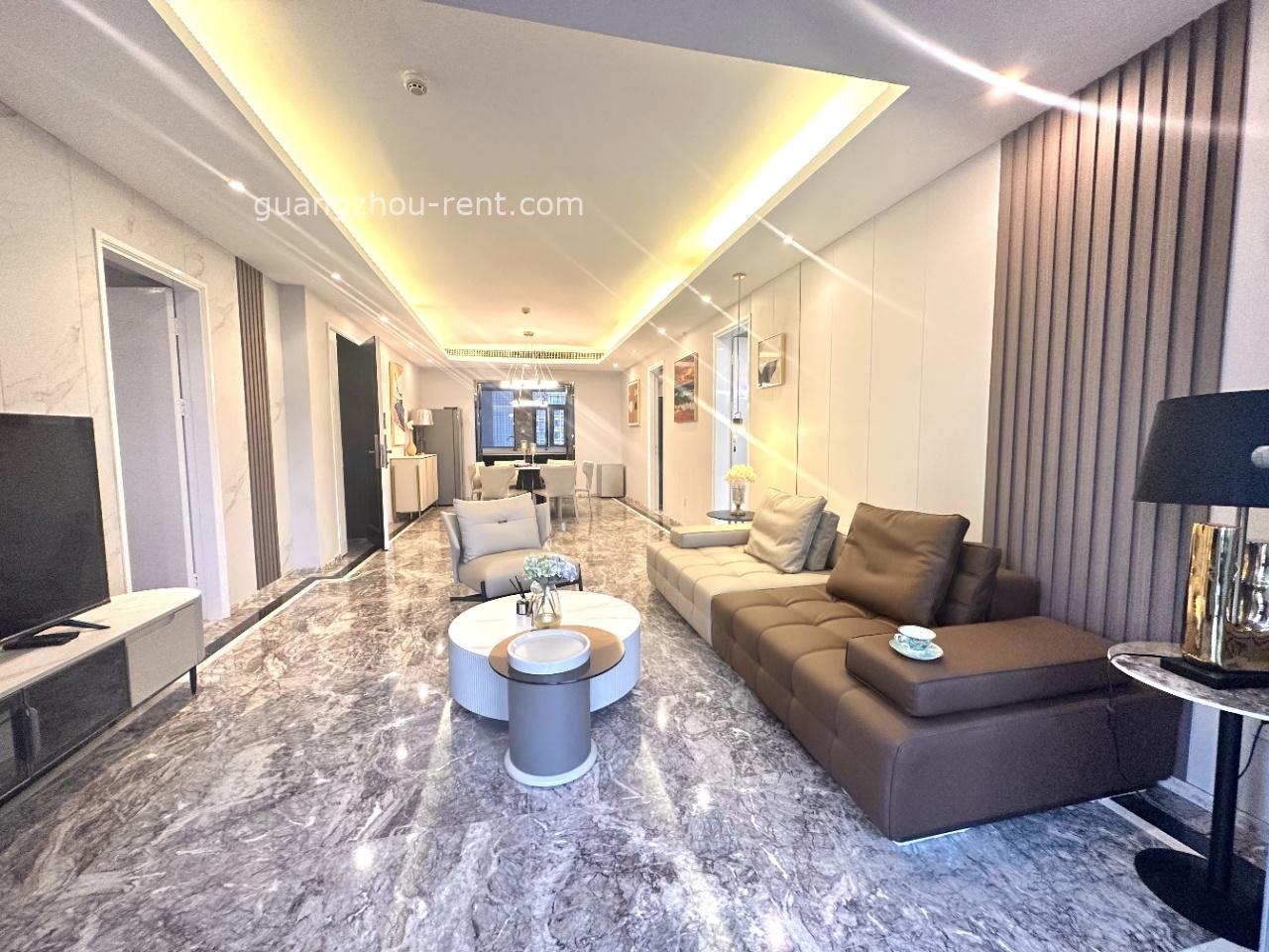 Name:凯旋新世界广粤尊府 New World Triumph Guangyue Mansion Address:No. 1 Qingfeng Street, Liede Subdistrict, Tianhe District, Guangzhou Chinese address:广州市天河区猎德街道清风街1号 Transportation:Eight minutes’ walk to Tancun station of line 5,six bus stops in total within 500 meters. Built year:2014 Shops/Malls: TIanhui Plaza,Link Plaza,K11 Mall;CR BLT supermarket,Aeon supermarket. Management fee:6.5RMB/Sqm/Month Located in Zhujiang New Town, Tianhe District, the complex offers